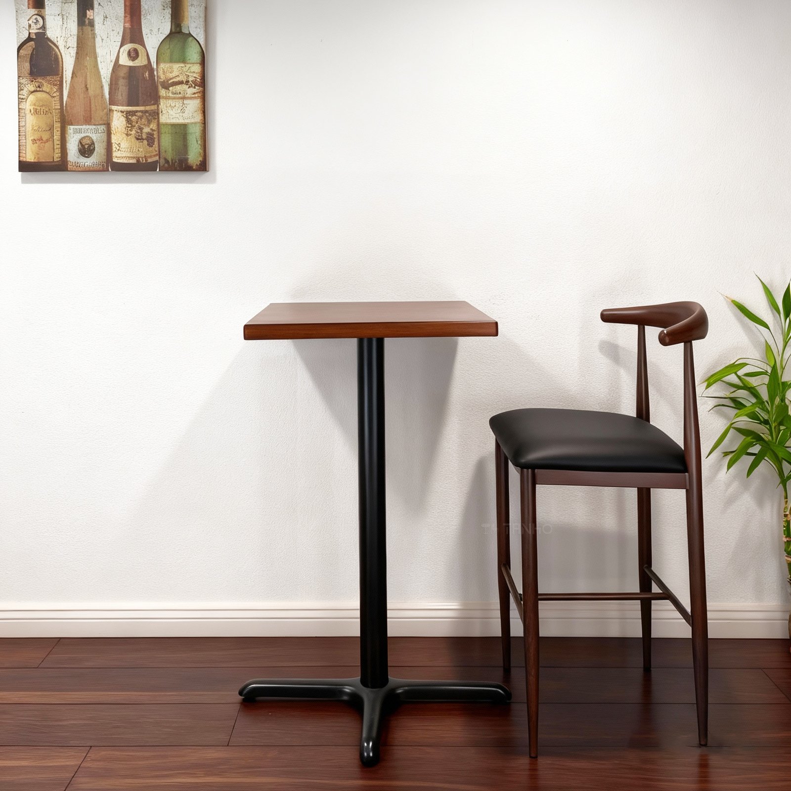 The combination of walnut finish and black PU leather is undoubtedly a perfect interpretation of modern fashion aesthetics. The warm texture of walnut gives the modern metal bar stools a classic and natural atmosphere, while the black PU leather adds an urban and modern trend. This combination of material and color will become an eye-catching design highlight, whether it is placed in a simple style space or an industrial style environment.