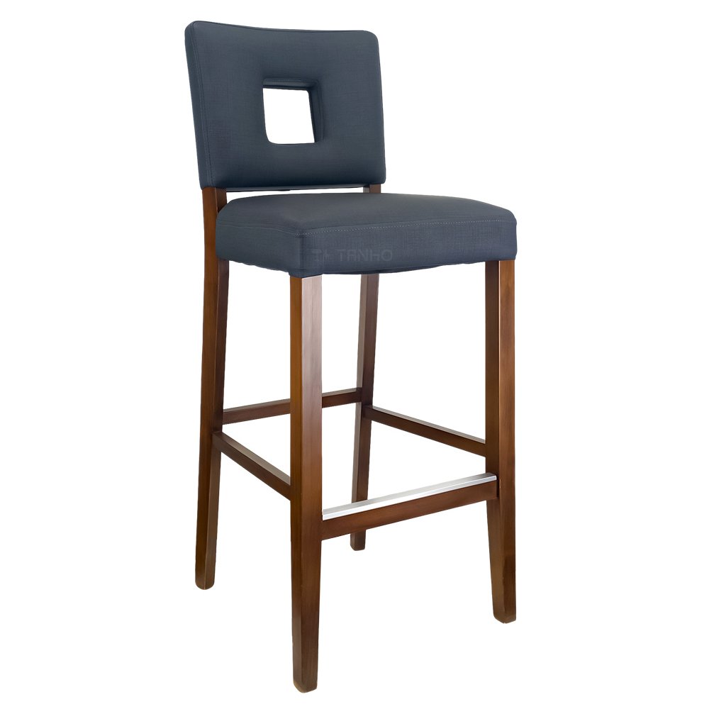 We have adopted a hollow backrest design. This design is not only simple and stylish in appearance. It can also effectively improve breathability. When sitting for a long time, the back is not easily stuffy. This design can provide you with a more refreshing and comfortable experience. It not only reduces the sense of oppression in space. It also adds a light visual beauty. These restaurant wood and fabric bar stools are a clever combination of functionality and aesthetics.
