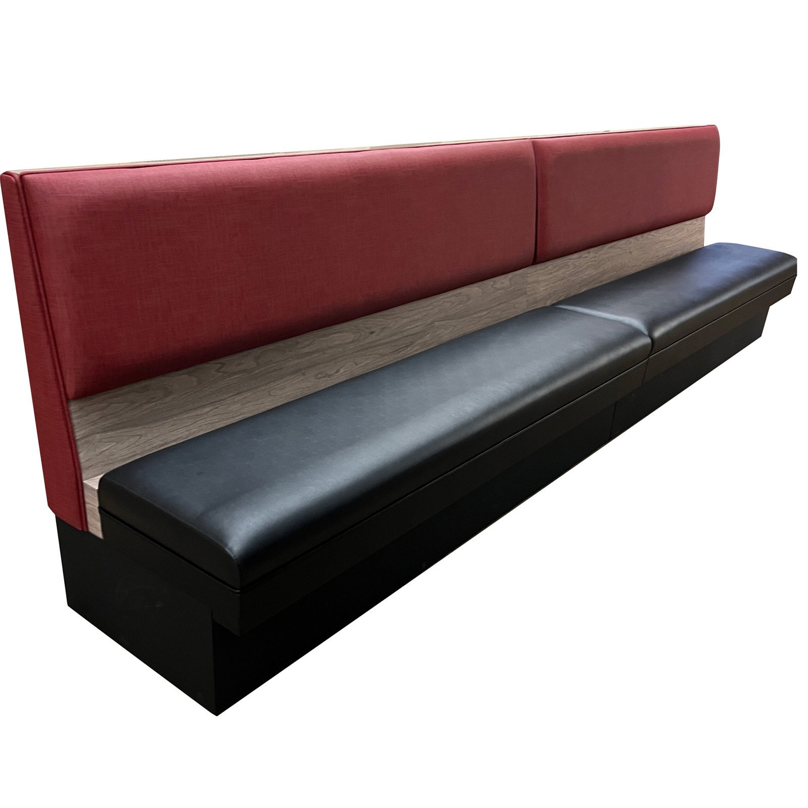 We have adopted a durable plywood base to manufacture this l shaped diner booth. The entire surface has been carefully treated. The backrest shows a natural wood grain texture. The bottom has a high-end black finish. The combination of the two finishes showcases a simple and elegant design style. The sturdy structure ensures long-term use. Therefore, it is suitable for high-frequency use in daily restaurant operations.