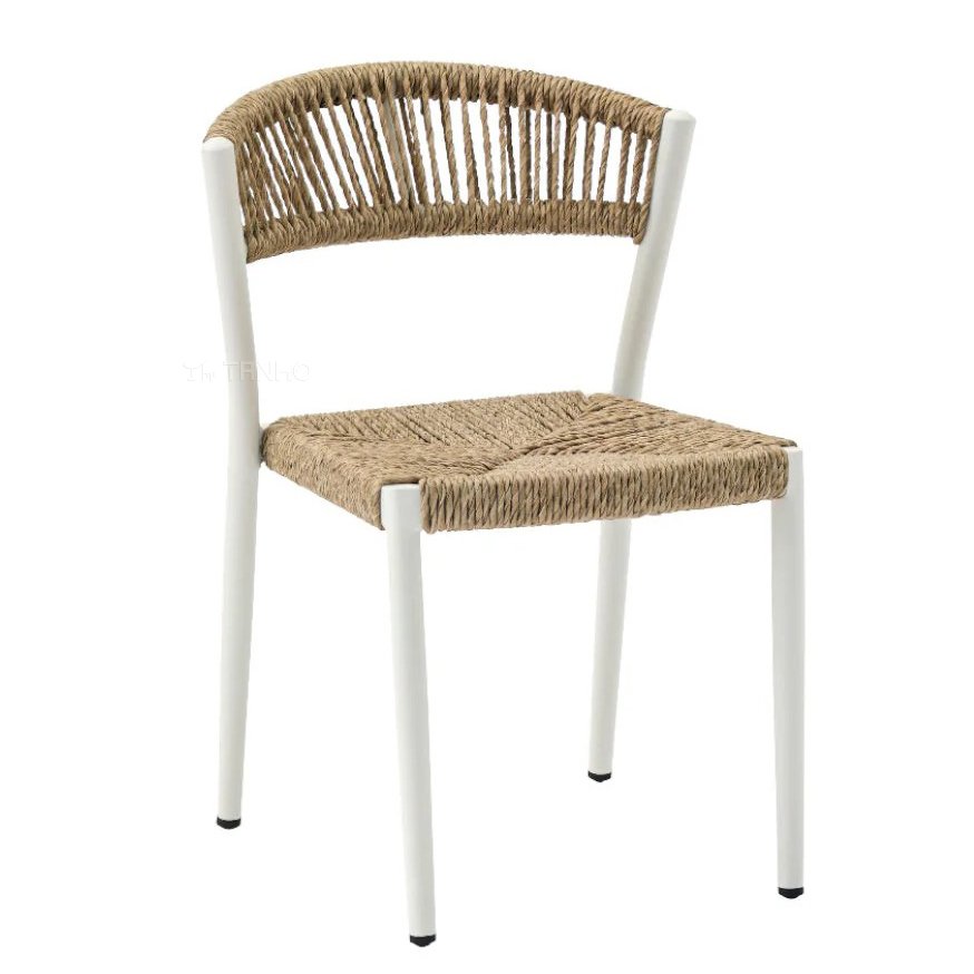 The seat is crafted with premium woven rope, offering both comfort and sophistication. Designed to handle outdoor elements, the material is UV-resistant to prevent color fading and deterioration from sunlight exposure. It is also waterproof, ensuring that these woven rope outdoor chairs remain in pristine condition without absorbing moisture or degrading over time.